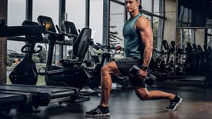 Start by standing up straight with your feet hip-width apart. Take a big step forward with one foot, bending your front knee until it's at a 90-degree angle. Keep your back leg straight, with your heel lifted off the ground.